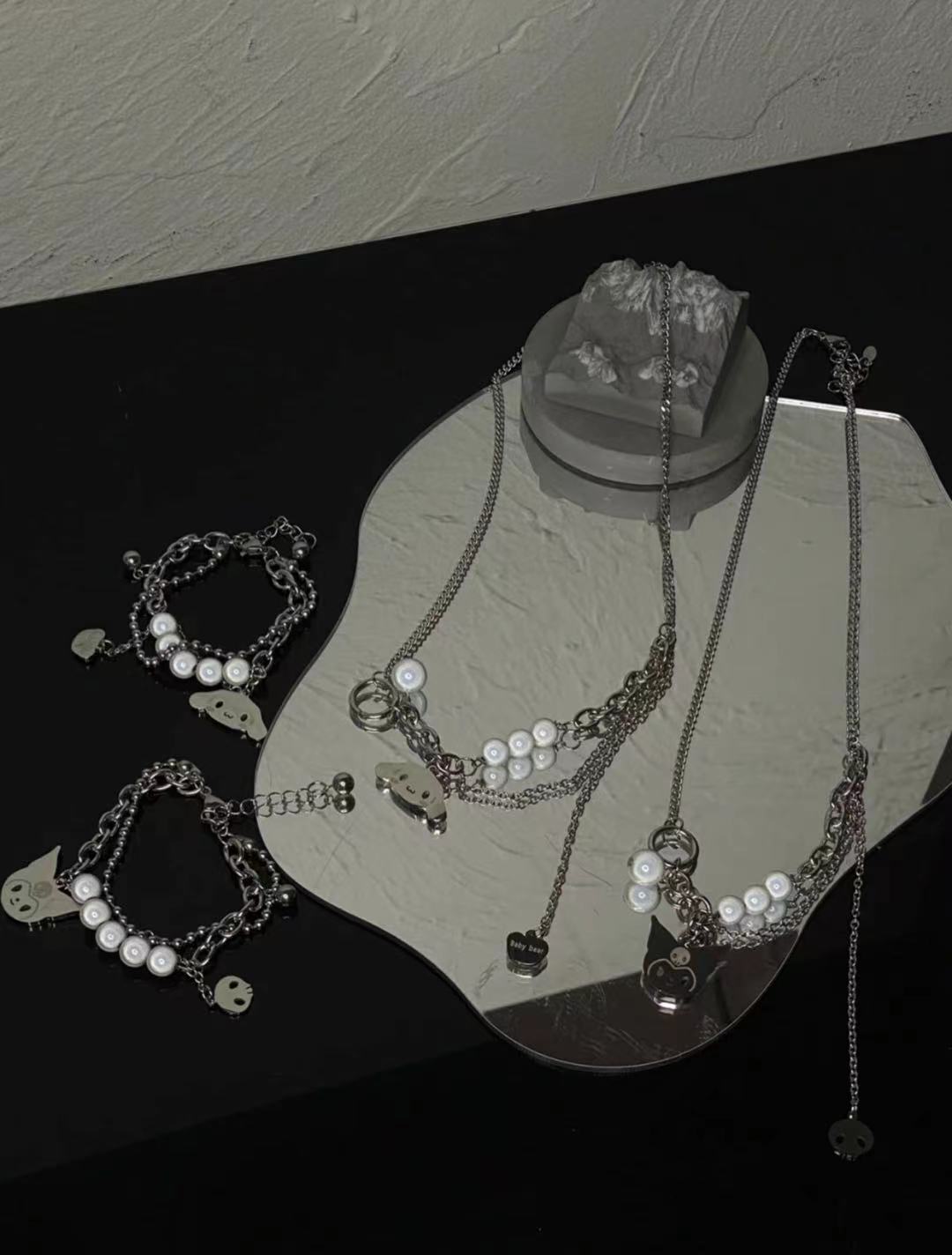 Maeelove Cinnamoroll/Kuromi reflective pearl necklace