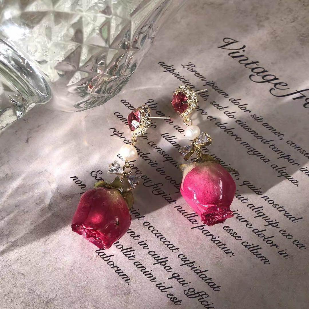 This earring is made of rose, gemstone and pearl. It is beautiful and charming for everyone. 925 sterling silver ➕ gold plated, this price is too good! Because it is all handmade, so the stock is not much, first come first served!