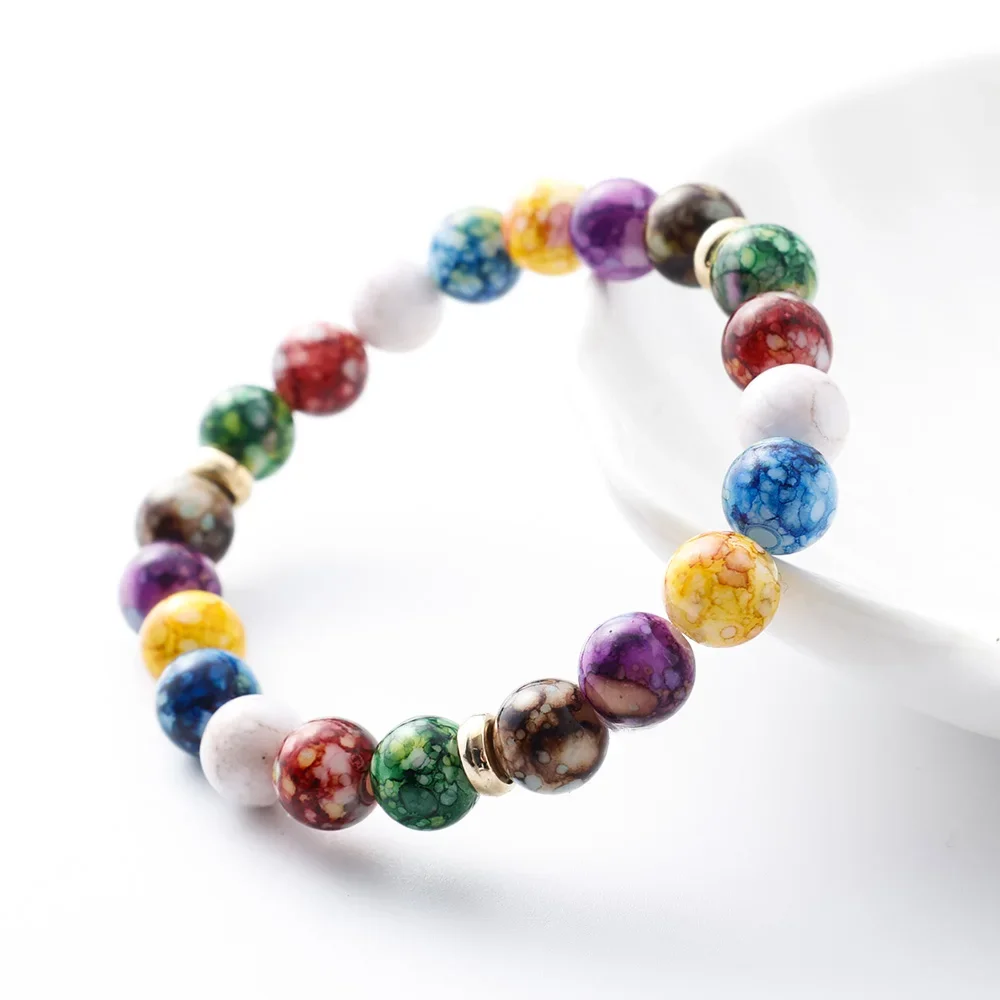 Natural volcanic stone colorful seven chakra energy beaded bracelet